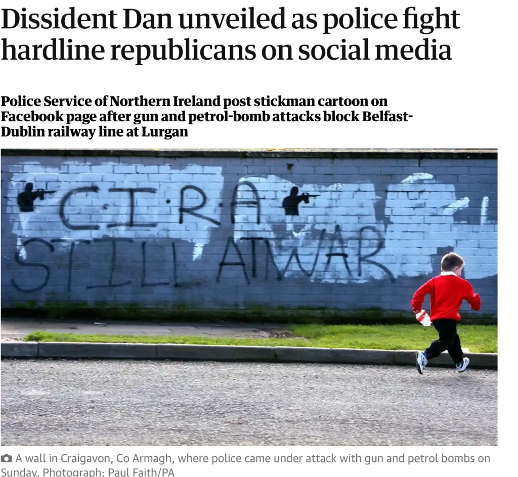 Before long teenagers, many from schools that dissident republicans actually recruited from, were asking to do their work experience in Lurgan police station. They wanted to meet Dan and his legendary creator M, whose mysterious moniker had signed off on a series of engaging and entertaining social media posts.