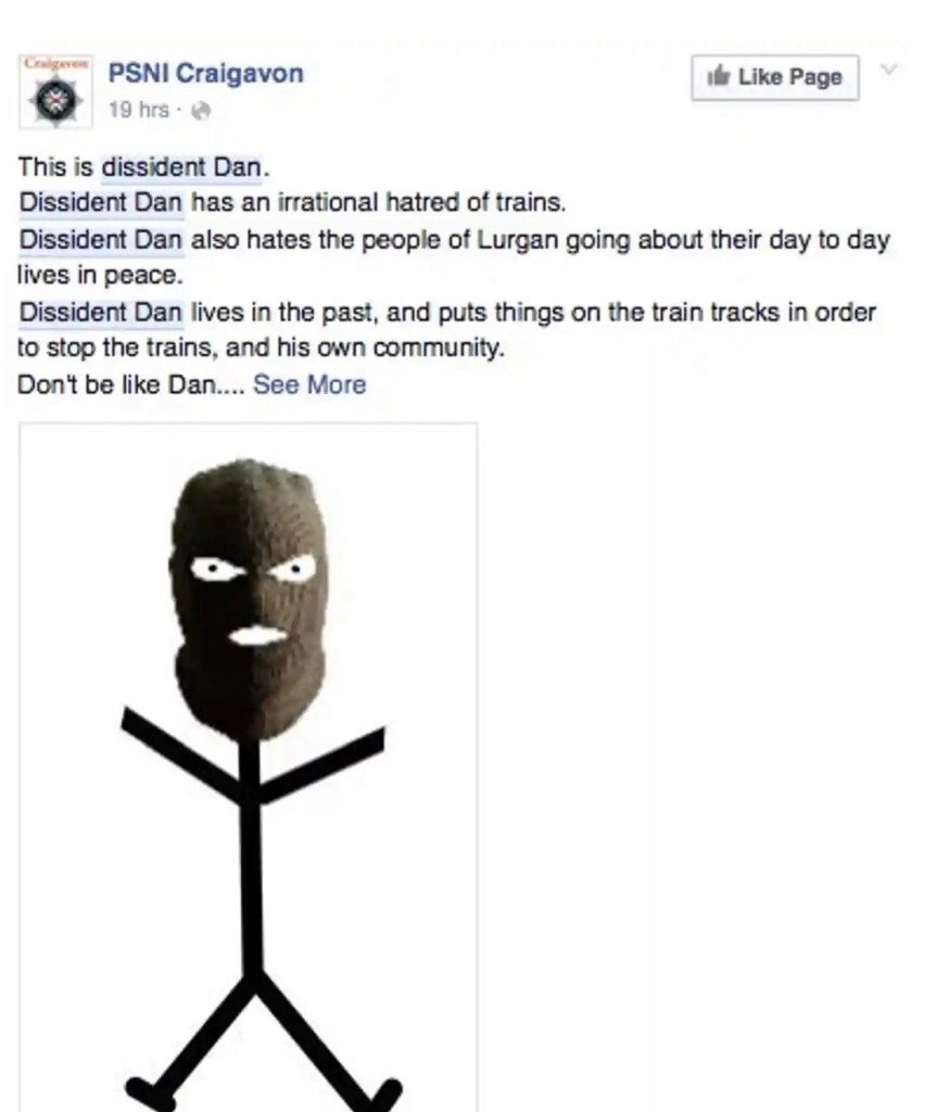 The use of a cartoon character by a police service on social media, took me back to 2016 in the PSNI. That was the month that the PSNI Craigavon social media team deployed dissident Dan, the terrorist stickman.