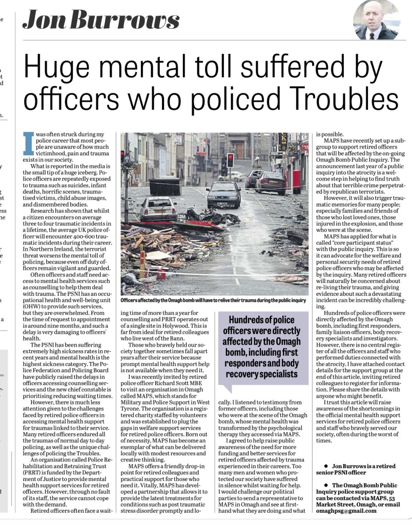 Please share this article or blog link as it has contact details for the new Omagh Police Support Group.