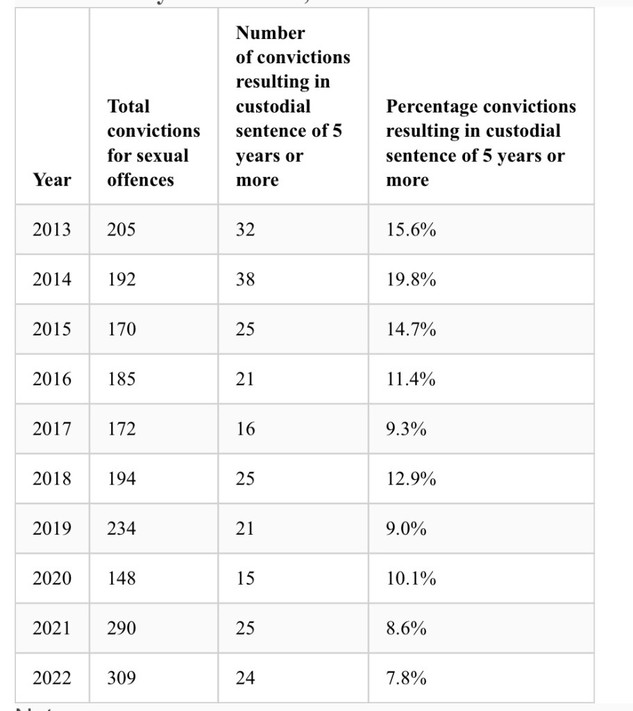 However, sexual and violent crimes, which are often inflicted on the most vulnerable in our society are different. There are various reasons why tough sentencing is particularly important for such crimes, which I will outline below, but first lets look at the data which proves sentencing for sexual offending is getting softer, whilst offending is increasing.