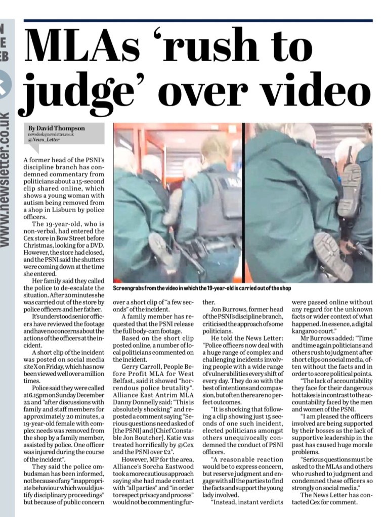 Belfast Newsletter 30.12.2024 – I was pleased to speak to the paper about MLA’s reaction to the incident in Lisburn at CEX.